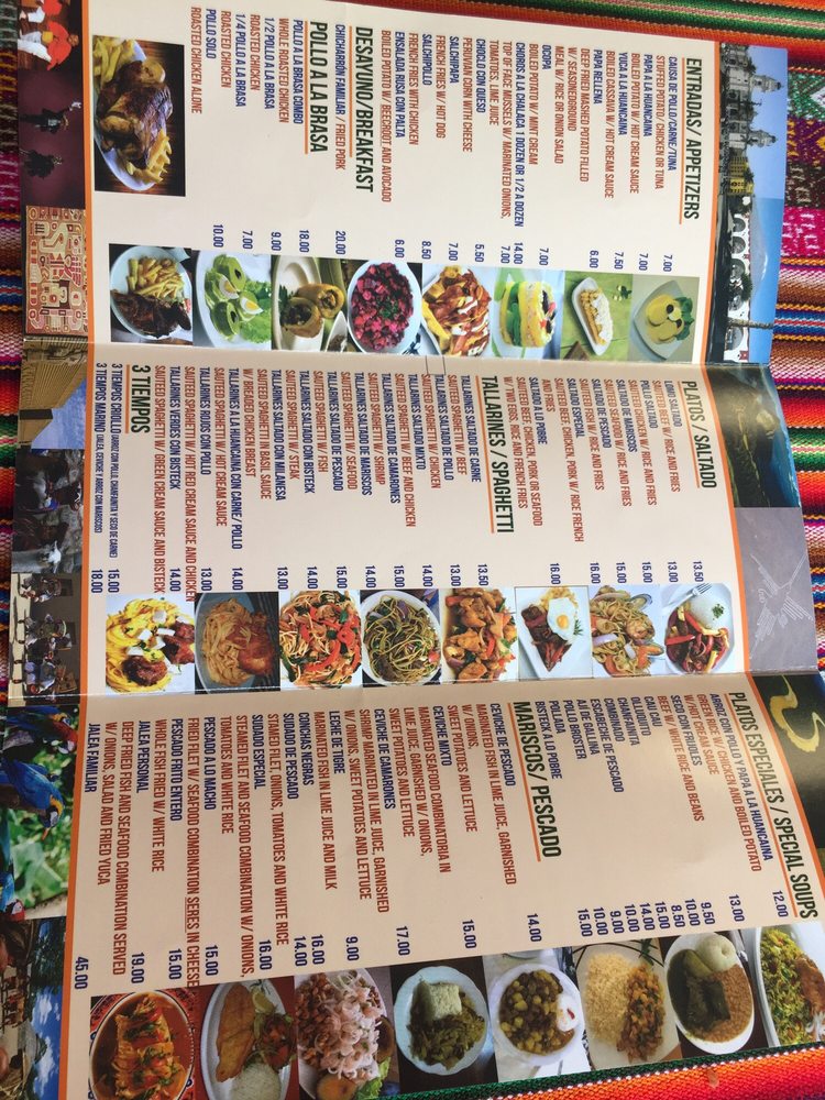 Cau-cau, seco de carne, tallarín rojo, chanfainita, arroz con pollo. / Cau-cau, meat seco, red noodles, chanfainita, rice with chicken.